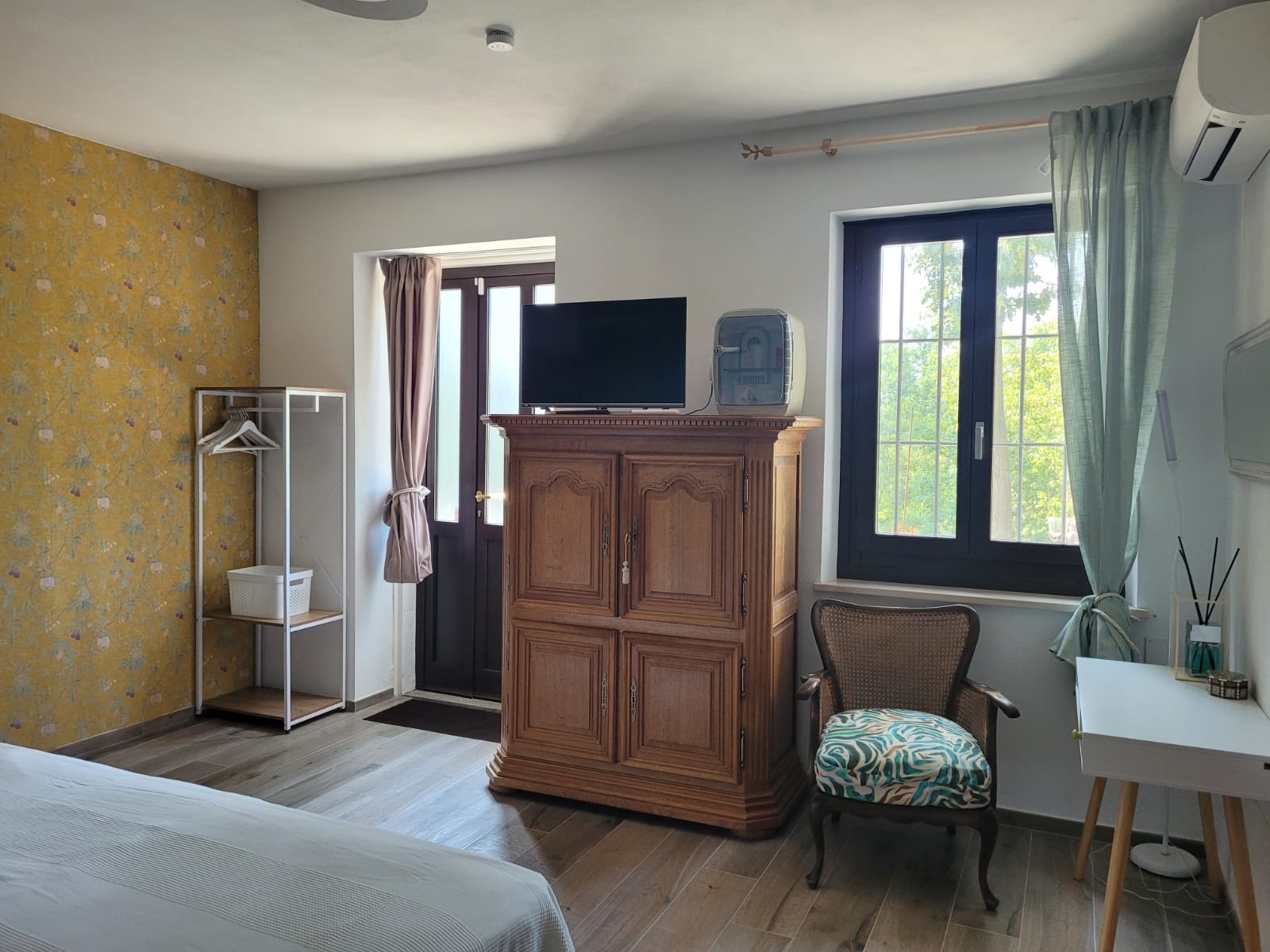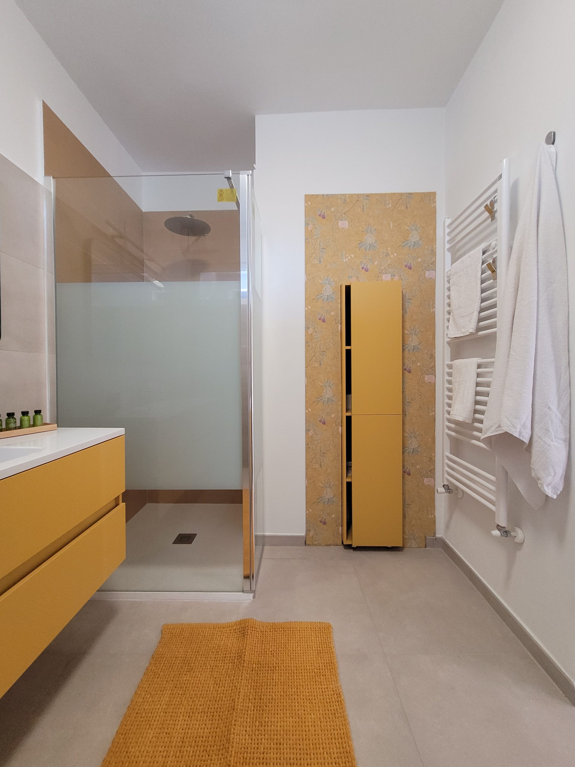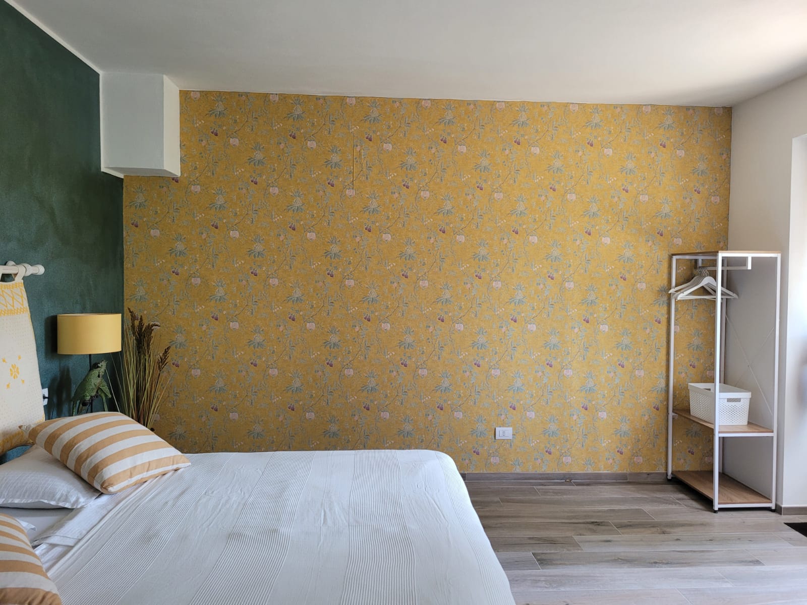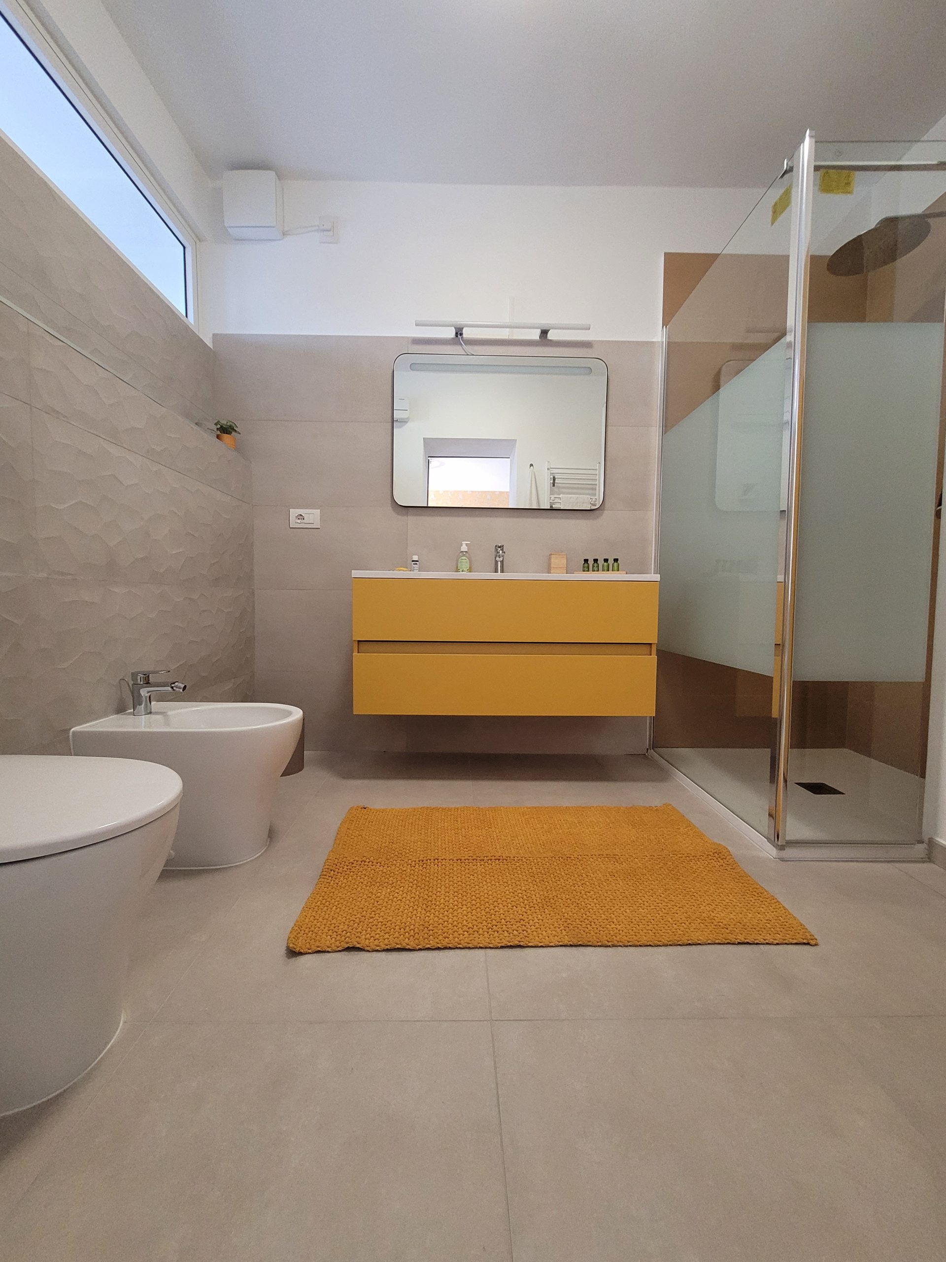 Das Zimmer „La Ginestra“ ist über einen direkten eigenen Eingang von Außen, im Erdgeschoss zu erreichen. Farblich in sanften Gelbtönen gehalten, verfügt das Zimmer über ein Großes Doppelbett von 180 x 200 cm. Das über eine antike Schiebetüre zu erreichende Bad ist mit großem Waschbecken, Dusche, WC und Bidet ausgestattet. Alle unsere Bäder sind mit einem Heizkörper, sowie zusätzlichem elektrischen Heizlüfter und Haar Fön ausgestattet. Ein bequemer Sessel, ein kleiner Schreibtisch , TV und Klimaanlage runden die Ausstattung ab.