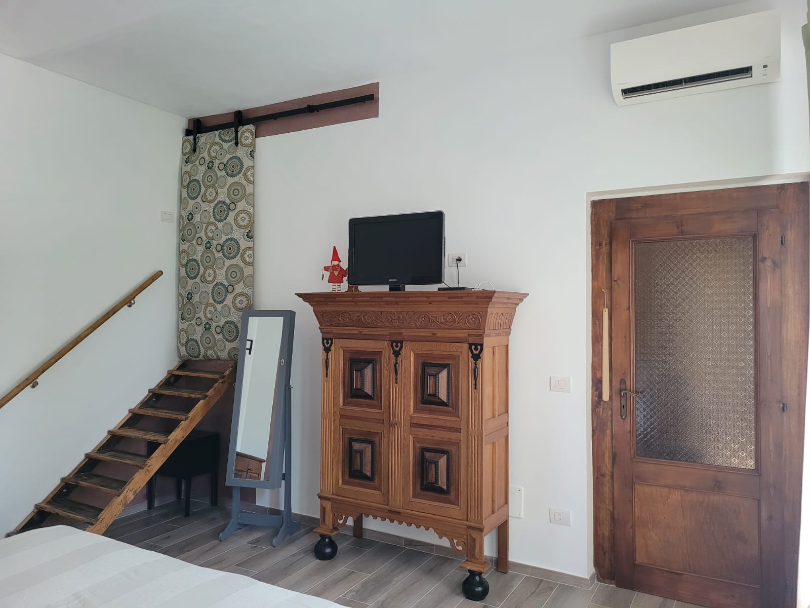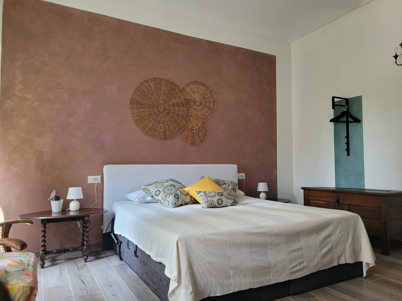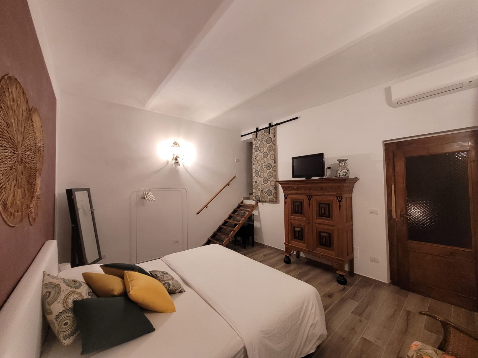 Hier im „La Quercia“ steht Ihnen ein elektr. verstellbares Boxspringbett der Größe 180 x 200 cm, ein antiker Schrank mit Ablagen sowie eine moderne Lösung zum Aufhängen Ihrer Kleider sowie Klimaanlage und TV zur Verfügung.